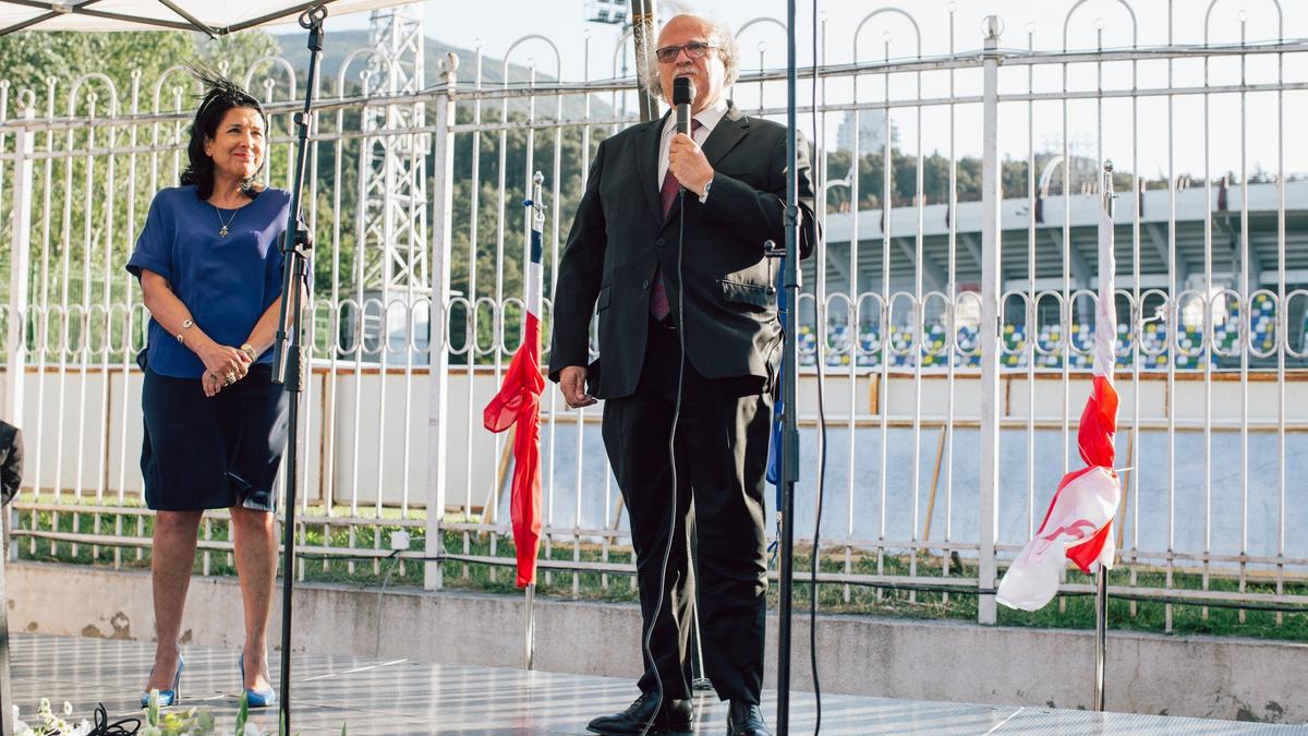 Dans son discours M. Pascal Meunier a souligné l’importance que la France attache aux liens avec la Géorgie, témoignée à de nombreuses reprises et notamment à l’occasion de la visite officielle de la Présidente de la Géorgie à Paris en février 2019 où celle-ci a été reçue à l’Elysée par le Président Macron. Au cours de cette visite la France et la Géorgie ont ouvert une nouvelle page dans la longue histoire de leurs relations en lançant le Dialogue Amilakhvari, destiné à intensifier les échanges bilatéraux de haut niveau dans les domaines politique, de défense, économique et éducatif. L’initiative a été nommée en hommage à Dimitri Amilakhvari officier de la Légion étrangère d’origine géorgienne arrivé à Paris en 1922 et mort pour la France en 1942. L’ambassadeur de France a rappelé qu’avec le dialogue Amilakhvari les deux pays avaient concrétisé la volonté d’amplifier leur coopération, le premier résultat tangible en est la création de l’Université franco-géorgienne qui ouvrira ses portes à la prochaine rentrée à Tbilissi.