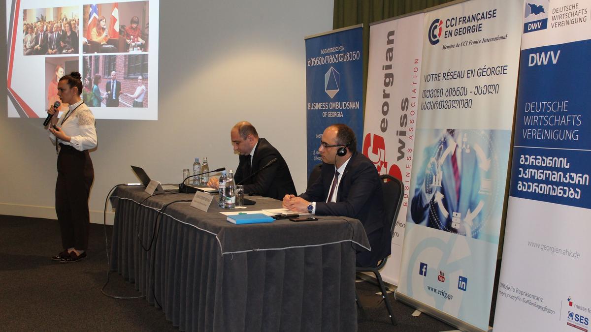 La conférence a débuté par la signature d'un mémorandum entre la Chambre de commerce française et l'Association des entreprises suisses avec le Business Ombudsman pour marquer le début de leur collaboration. L'objectif de ce protocole est que les deux parties collaborent et coopèrent de manière à soutenir les initiatives des deux organisations qui se traduisent par une amélioration de l'environnement des entreprises et par l'innovation en Géorgie, présentes et futures. Le mémorandum a été signé par le président de la chambre française Antoine Bardon, le président de l'Association géorgienne des entreprises suisses Nona Mamulashvili et le Business Ombudsman Irakly Lekvinadze.