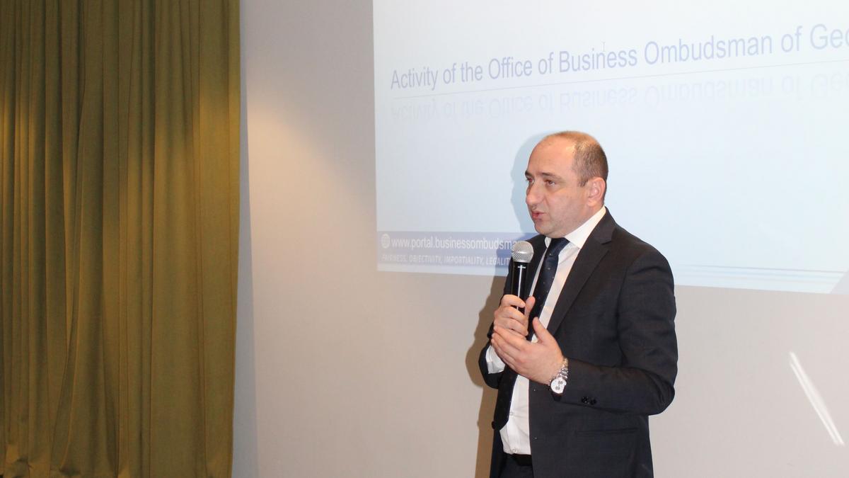 La présentation du Business Ombudsman a été suivie par la présentation de Zurab Dzelashvili, directeur adjoint du Revenue Service en Géorgie. Le Revenue Service de Géorgie est une personne morale de droit public relevant du ministère des Finances qui exerce le contrôle de l'État sur l'ensemble du territoire géorgien. L'objectif principal du service est de soutenir les entreprises en Géorgie, de créer un environnement favorable à la création de nouvelles entreprises et à leur développement avec un système fiscal fiable. Il a commencé par exprimer les intérêts communs avec le Business Ombudsman. Il s’agit notamment de travailler sur la fiscalité de l’État et sur les domaines concurrentiels pour créer un bon climat des affaires en Géorgie. Il convient que le système fiscal doit être réformé avec une application de la loi afin de reconnaître les contribuables dans les délais de paiement. Le Revenue Service veut mettre en place des réformes contre la criminalité financière car le contrôle des impôts est un gros défi pour la Géorgie. Egalement il a déclaré que des réformes étrangères sont nécessaires à l'amélioration du système fiscal et qu'elles devraient mettre en place un mécanisme de contrôle à court terme dans leur agence pour que cela se produise.