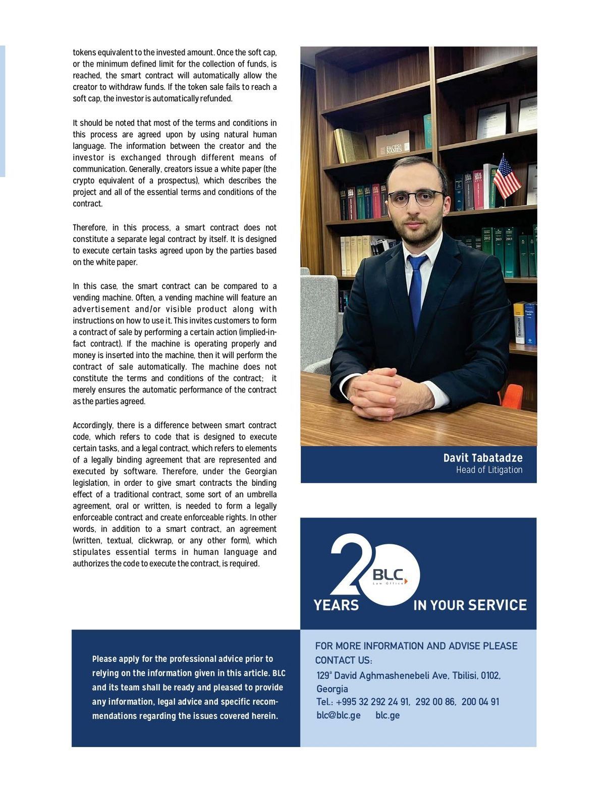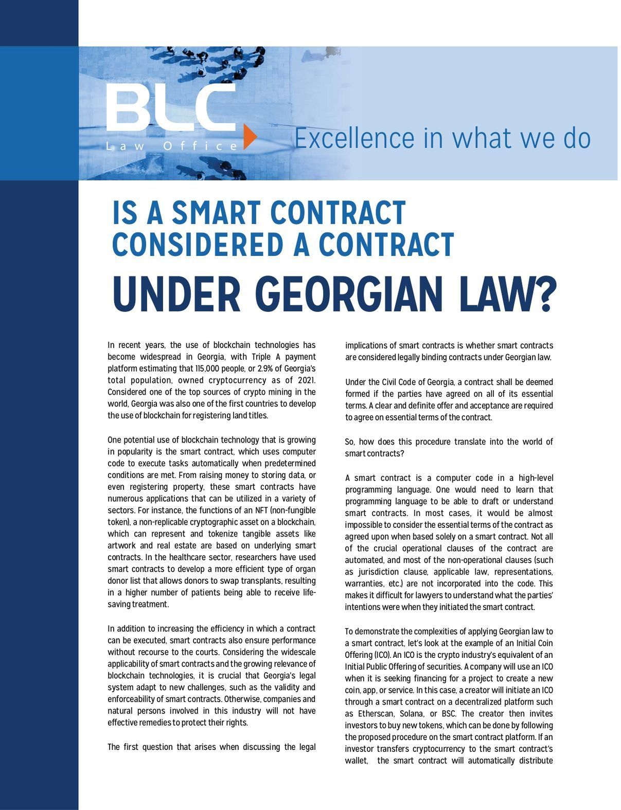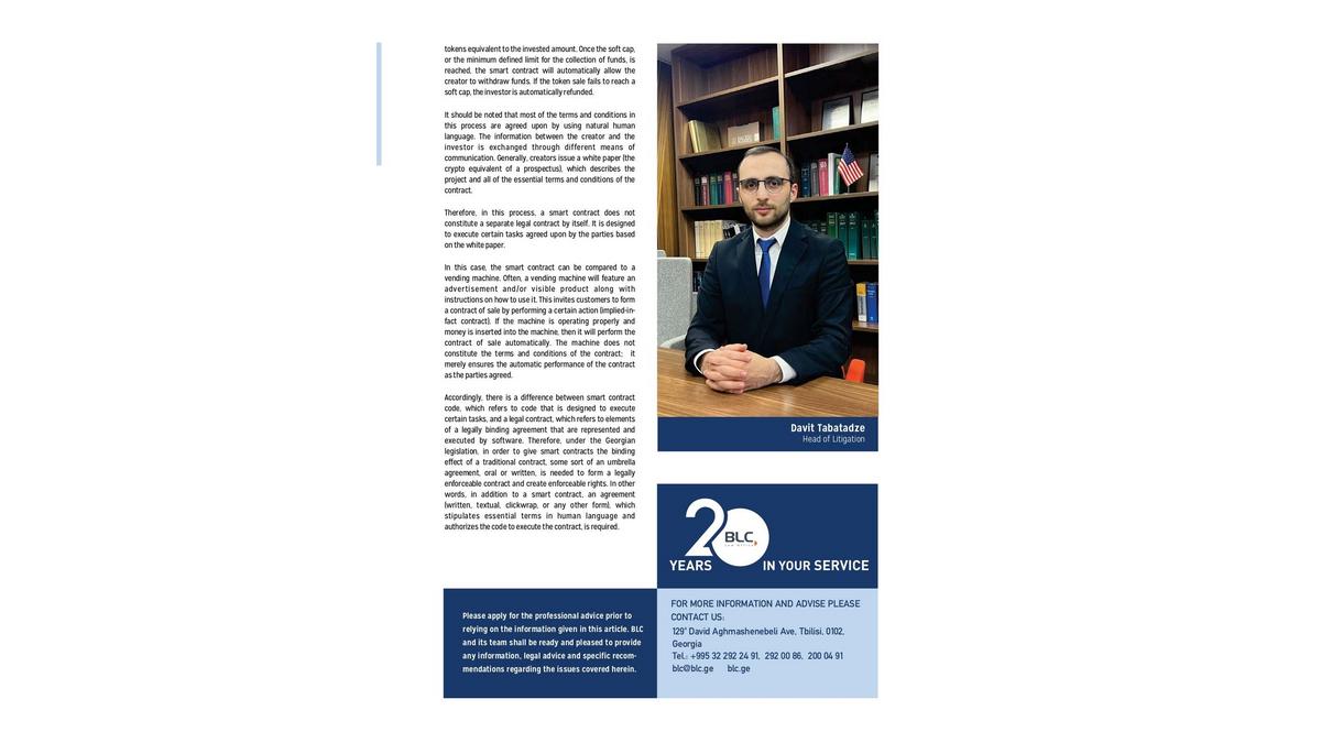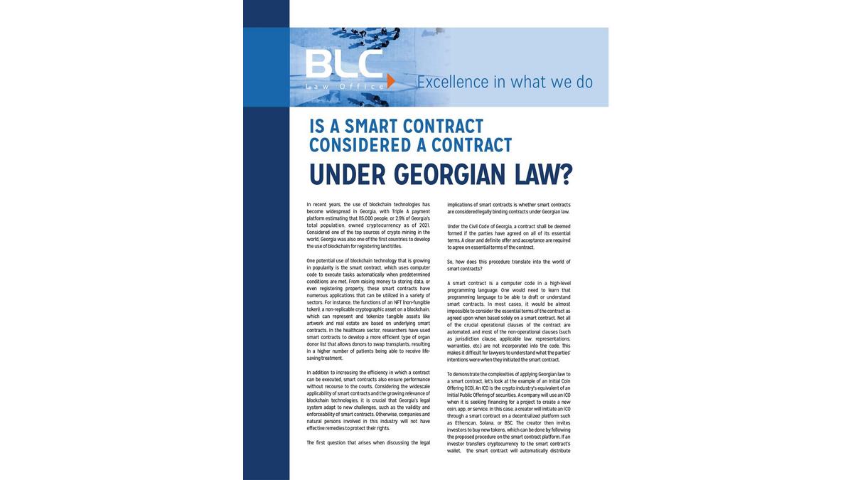 La CCIFG recommande la lecture de l'article "Un contrat intelligent est-il considéré comme un contrat au sens de la loi géorgienne ? " - préparé par les partenaires du Cabinet Juridique BLC Law Office.