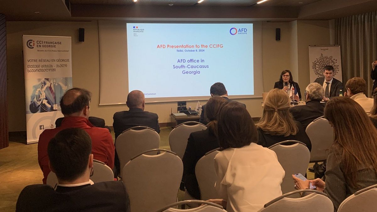 Conférence économique animée par Madame Fanny DELPEY, Directrice de l'Agence Française de Développemen t Monsieur Hugo DEBROISE, Chef du Service Economique à l'Ambassade de France en Géorgie.