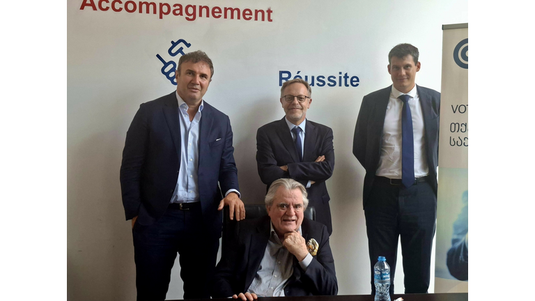 A convivial Tbilisi gathering: economic exchanges, Château Mukhrani wines, and strengthening France–Georgia business ties.