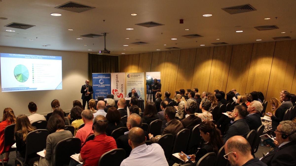 The conference began with the signing of a Memorandum between the French Chamber of Commerce and the Swiss Business Association with the Business Ombudsman to mark the beginning of their collaboration. The objective of this MoU is for both parties to collaborate and cooperate in a manner that supports the initiatives of both organizations which transpire into improvement of the business environment and innovation in Georgia, present and future. The memorandum was signed by president of the French Chamber Antoine Bardon, the president of the Georgian Swiss Business Association Nona Mamulashvili and the Business Ombudsman Irakly Lekvinadze.