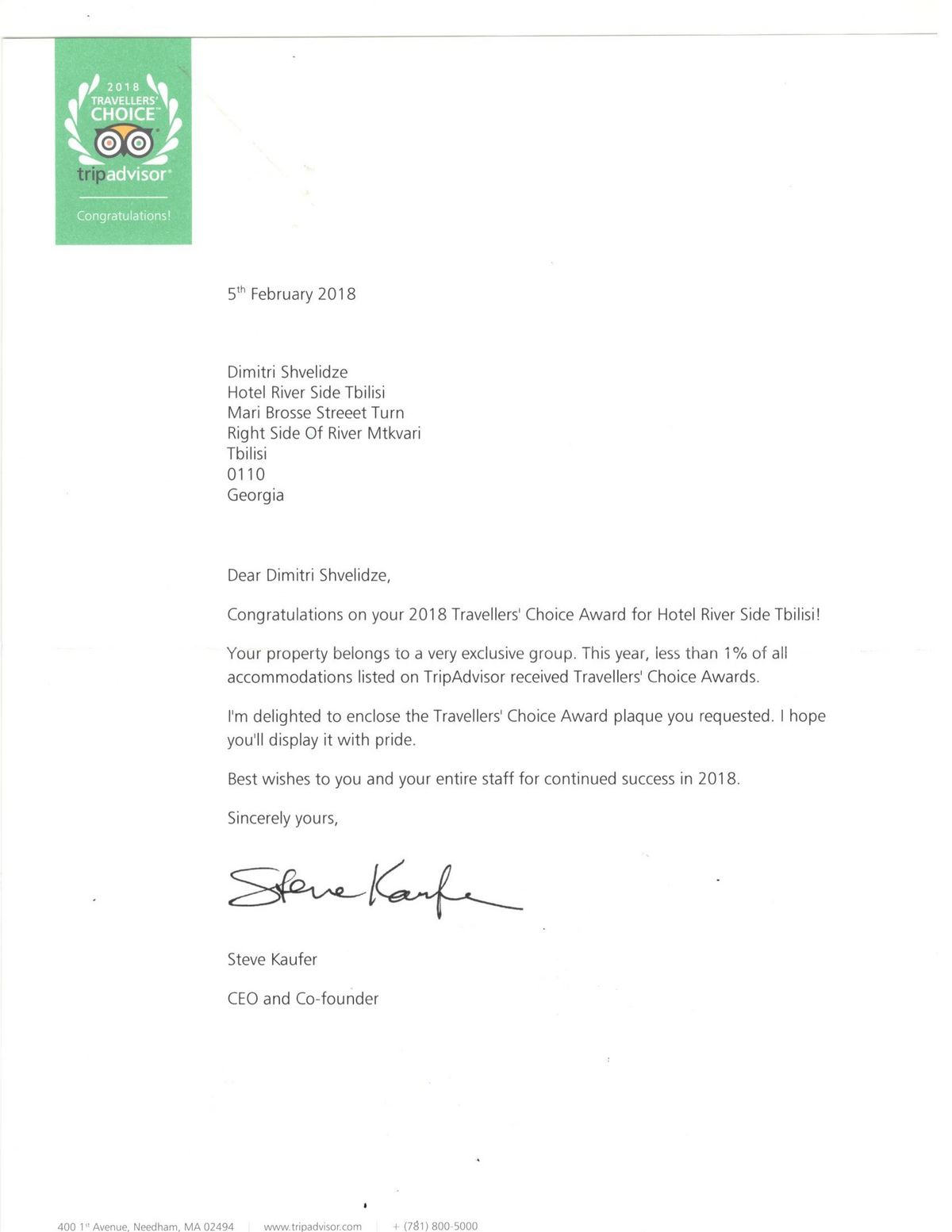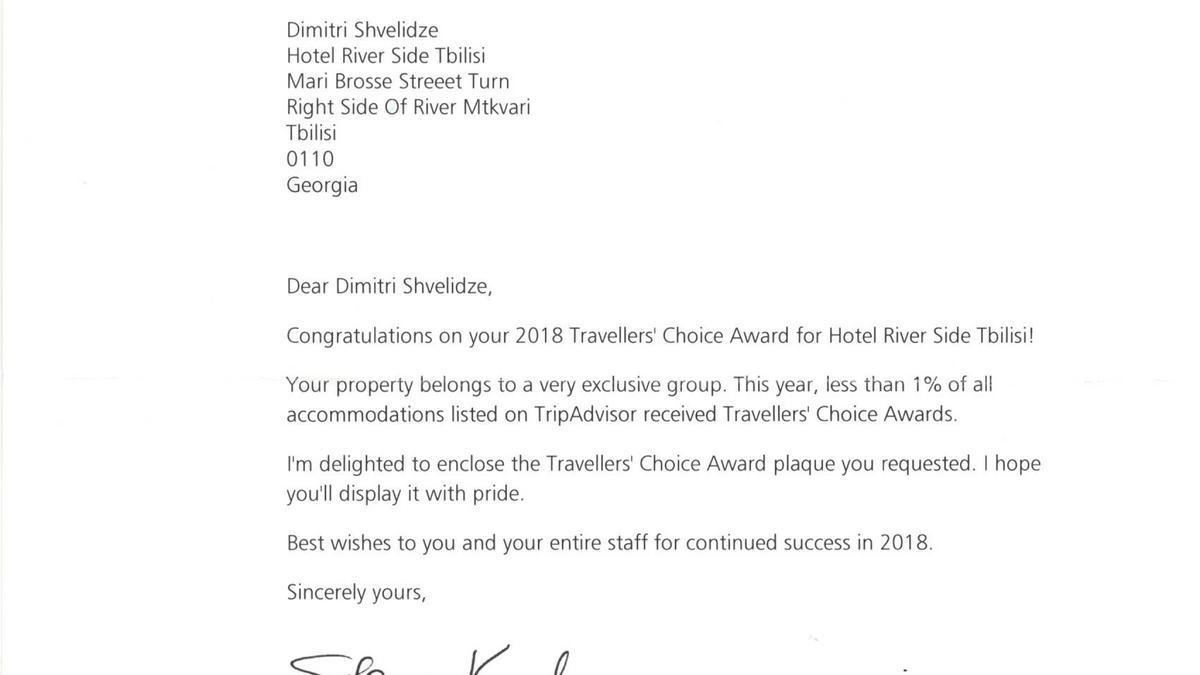 Travellers’ Choice Award for Hotel Riverside
