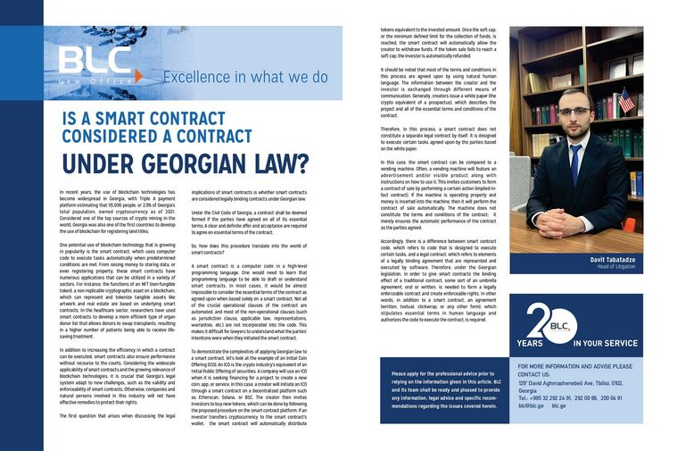 The CCIFG recommends reading the article, "Is a smart contract considered a contract under the georgian law ? " - prepared by the partners of BLC Law…