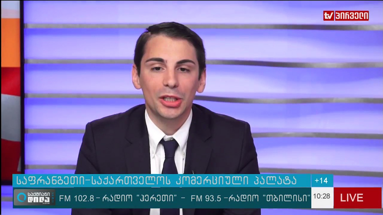 Etienne Gachet-Mauroz on the set of TV channel Pirveli Canal.